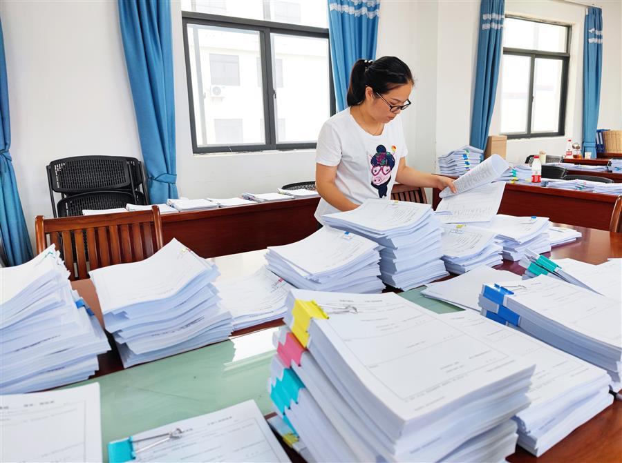 韋瑩瑩在防城港項(xiàng)目部看施工圖紙
