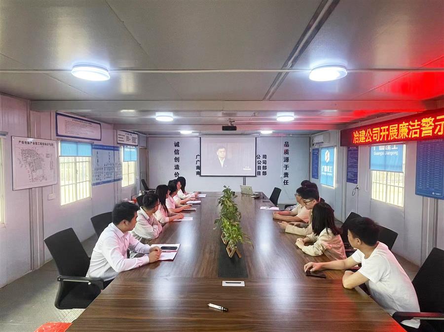 活動(dòng)中,宣講團(tuán)成員展示了愛國(guó)朗誦——《有為·無畏》;組織項(xiàng)目部員工觀看了廉潔警示教育片《高壓懲治腐敗》。