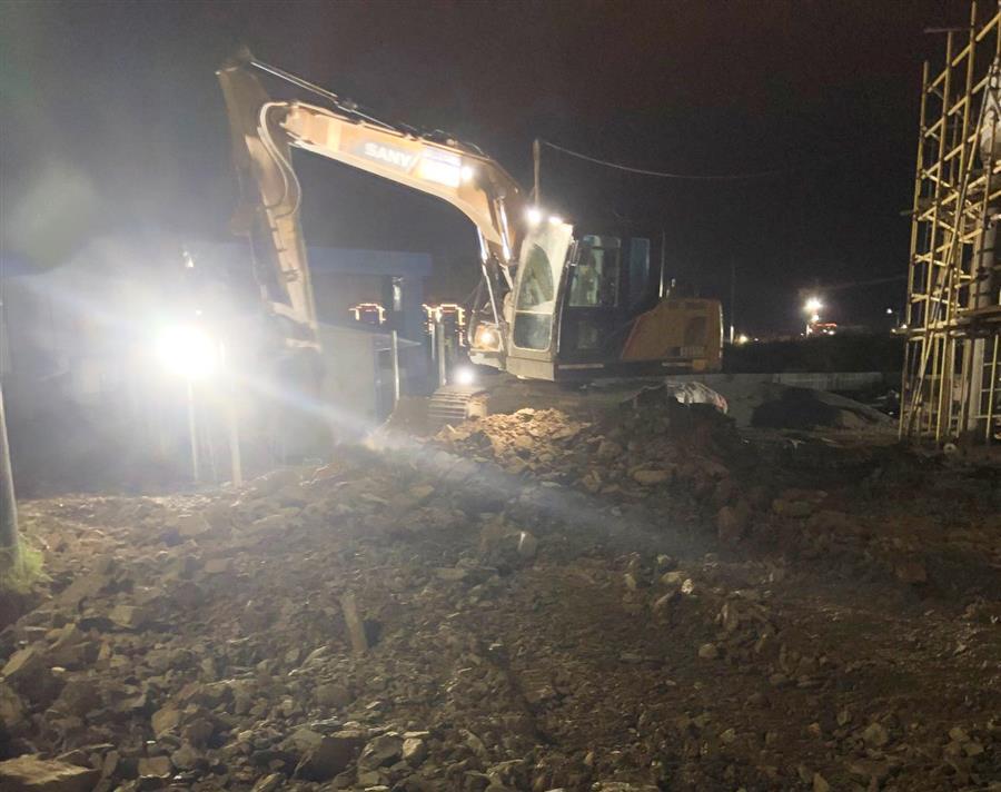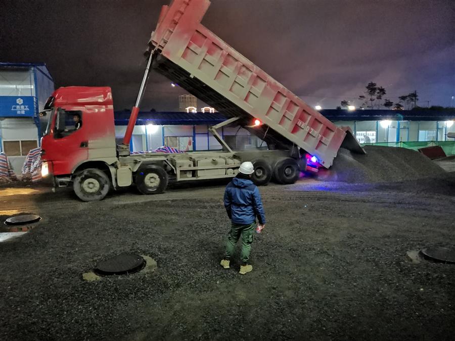 為全力沖刺四季度,項(xiàng)目部實(shí)行“快馬加鞭、保質(zhì)保量、人停機(jī)不停、晝夜料不停!”的搶工模式,在保證安全和質(zhì)量的前提下,項(xiàng)目部全體成員搶抓施工黃金期,全力以赴推進(jìn)項(xiàng)目建設(shè)。為加快項(xiàng)目建設(shè),項(xiàng)目部反復(fù)討論研究制定了科學(xué)的施工計劃,合理安排人力物力。面對晚間要拉運(yùn)回填土方和石料的問題,項(xiàng)目部采取人員輪流值班,料來人在,統(tǒng)一指揮的措施,做到合理配置堆放,減少二次運(yùn)輸,提高工作效率。
