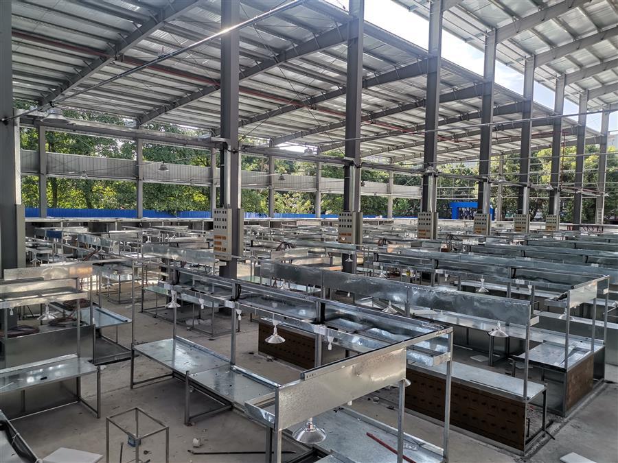 9月21日,在第十分公司承建的柳州市桂中商城改造過渡市場(chǎng)項(xiàng)目施工現(xiàn)場(chǎng),100多名施工人員堅(jiān)守崗位,趕工期,搶進(jìn)度。目前,該項(xiàng)目道路已全部硬化,鋼結(jié)構(gòu)安裝工程完成90%,門窗安裝完成60%,水電安裝完成90%。