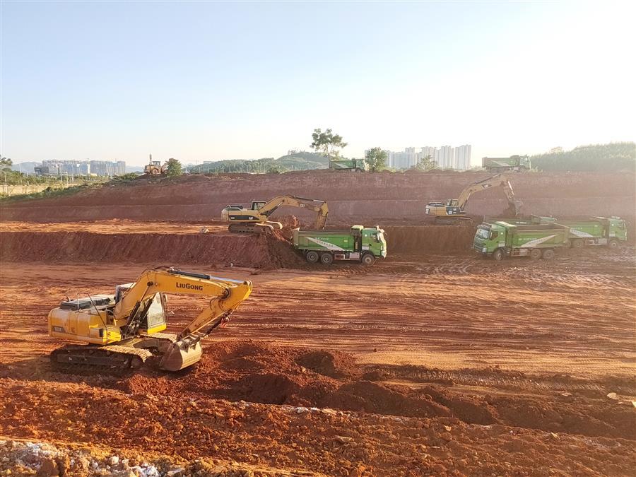 在第七分公司承建的柳江區(qū)新興工業(yè)園柳石路東片區(qū)基礎(chǔ)設(shè)施建設(shè)項(xiàng)目-土方平整工程(三期)施工現(xiàn)場,項(xiàng)目管理人員和工人用辛勤的汗水為城市建設(shè)默默奉獻(xiàn)。