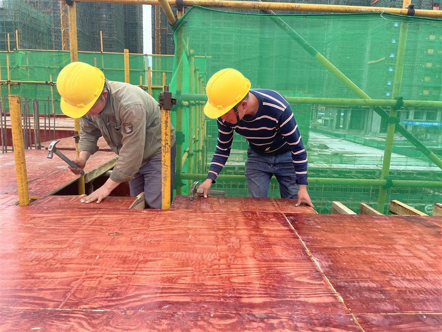 項目部通過加強技術(shù)對接,每天晚上開會總結(jié)當天情況等措施,及時掌握人員、機械、材料、施工環(huán)境等現(xiàn)場施工情況的動態(tài)變化,制定對策,確保施工順利協(xié)調(diào)高效開展,并且不斷優(yōu)化施工組織安排,對存在的問題及時調(diào)整策略,快速解決,確保實現(xiàn)產(chǎn)值目標。特別是集中力量對16#樓進行全力沖刺,組織工人們加班加點,支設(shè)模板、綁扎鋼筋、澆筑混凝土等,確保了5天一層的施工進度。