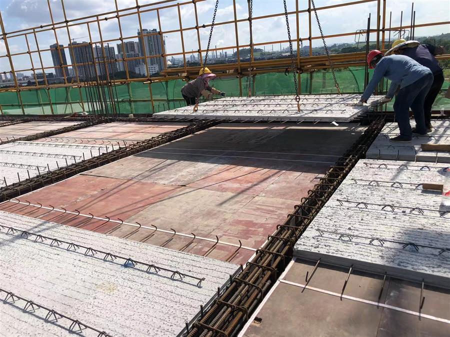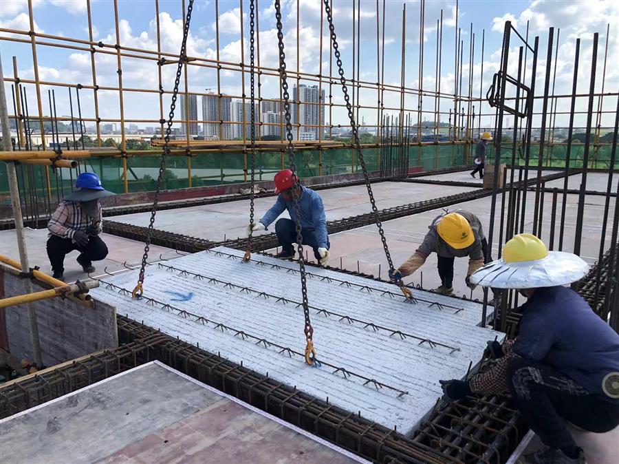 為了避開高溫時段作業(yè),項目工作人員深夜加班加點進行預(yù)制疊合板吊裝作業(yè),有效保證了施工進度,在搶抓施工進度的同時,項目部嚴把工藝質(zhì)量,嚴格按照工藝標準,逐條逐項落實每一項細節(jié)、每一道工序,確保了項目的施工質(zhì)量。
