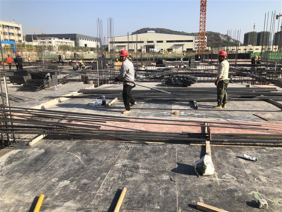 該項(xiàng)目是柳州市重點(diǎn)項(xiàng)目,總建筑面積為8.7萬平方米。目前靜壓樁施工已全部完成;1號樓E區(qū)頂板完成;H區(qū)底板完成;F區(qū)與G區(qū)底板防水保護(hù)層完成;2號樓A區(qū)二層模板安裝完成,D區(qū)負(fù)一層滿堂架搭設(shè)完成。