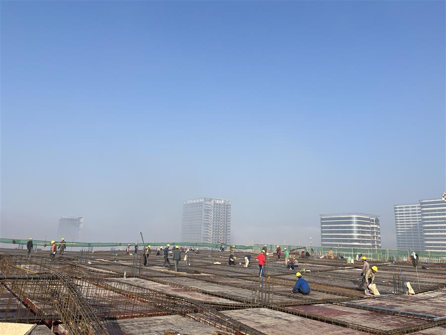 北部生態(tài)新區(qū)智能機器人標(biāo)準(zhǔn)廠房(二期)1#、2#、5#、7#標(biāo)準(zhǔn)廠房、13#、14#甲類庫房工程項目部統(tǒng)籌調(diào)配資源,科學(xué)組織施工,認真抓好項目建設(shè)。該項目總建筑面積10.8萬平方米,目前1#標(biāo)準(zhǔn)廠房主體驗收完成,2#標(biāo)準(zhǔn)廠房樁基礎(chǔ)50%,5#標(biāo)準(zhǔn)廠房1-10軸底板墊層完成,11-27軸主體結(jié)構(gòu)封頂。