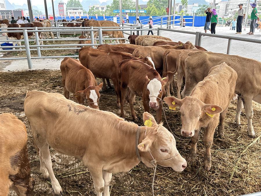 活動現(xiàn)場,熱鬧非凡,大家參觀了農(nóng)特項目園區(qū)及桂中牛行,并對園區(qū)今后的發(fā)展提出了意見和建議。桂中牛行作為農(nóng)特項目園區(qū)內(nèi)的首個主力商家,主營活牛羊交易,副營馬、驢、騾子等草食動物交易。試業(yè)當(dāng)天,牛群“哞哞”聲此起彼伏,一頭頭體格健壯的牛兒一字排開,人們?nèi)宄扇旱貒墼谝黄?,仔細挑選著心儀的牛兒。一旁的牛崽交易市場內(nèi),買家更是爭相搶購體態(tài)良好的牛崽,市場交易紅火。