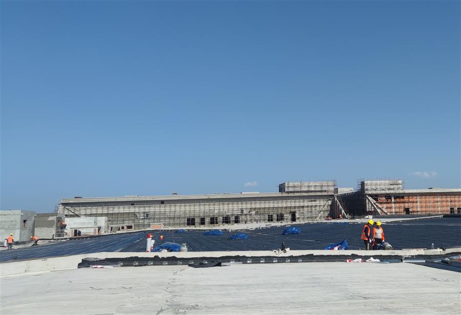 走進50Gwh鋰電池產(chǎn)業(yè)基地(新能源電池標(biāo)準(zhǔn)化廠房)一期項目施工現(xiàn)場,機器轟鳴,工程車來回穿梭,施工人員忙碌作業(yè),水電消防安裝、屋面防水卷材鋪貼、內(nèi)外墻抹灰、門窗窗框安裝、抗裂砂漿和室外管網(wǎng)路基施工等工作緊張有序地進行中。為應(yīng)對項目體量大、工期緊的情況,項目部緊扣節(jié)點目標(biāo)掛圖作戰(zhàn),逐項細(xì)化分解工程量,量化任務(wù)清單,制定日工作進度表,錨定目標(biāo)精準(zhǔn)發(fā)力,做到畫“圖”定責(zé)、按“圖”推進、看“圖”指揮,實現(xiàn)以日保周、以周保月、以月保季,確保了目標(biāo)任務(wù)按序按時推進,曾以不到5個月的時間實現(xiàn)了項目包含的15個單體工程全面封頂。