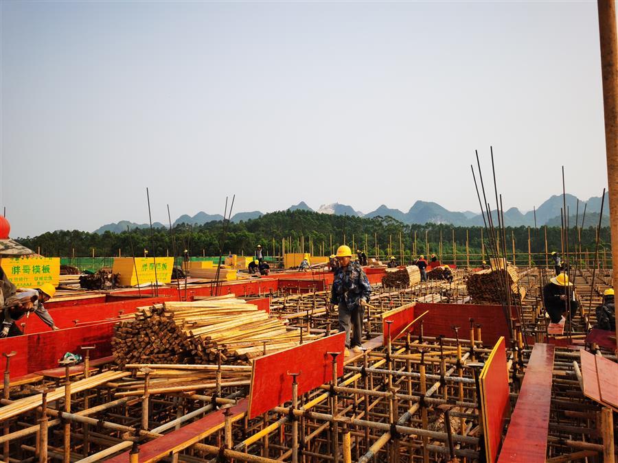連日來(lái),憑祥邊境經(jīng)濟(jì)合作區(qū)水果小鎮(zhèn)東盟農(nóng)副產(chǎn)品系列加工配套設(shè)施建設(shè)項(xiàng)目,現(xiàn)場(chǎng)32臺(tái)機(jī)械設(shè)備火力全開,最高峰現(xiàn)場(chǎng)施工人員達(dá)到460人,建設(shè)者們擼起袖子加油干,鉚足干勁向前沖!