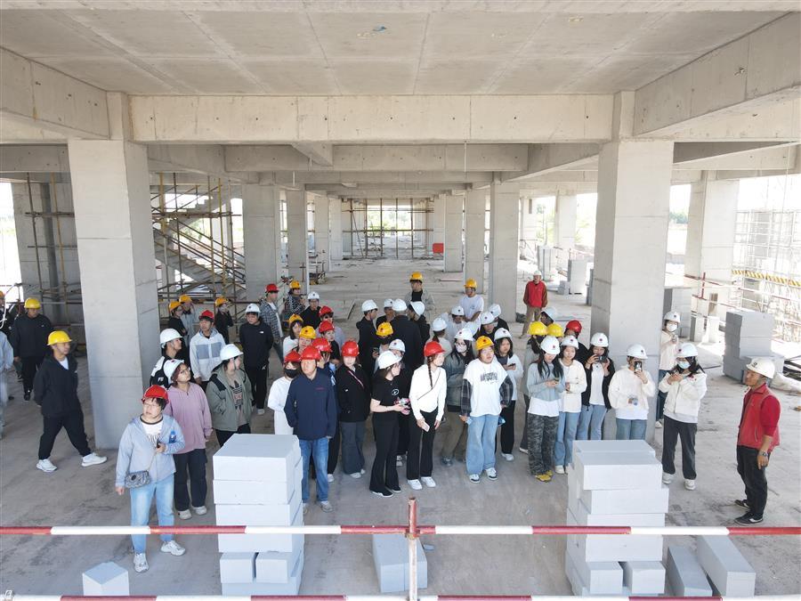 在參觀前,項目負責人簡要介紹了冶建公司發(fā)展歷程和項目概況,詳細講解了施工現(xiàn)場的各項安全注意事項。之后,所有人員佩戴好安全帽有序進入施工現(xiàn)場進行參觀。觀摩學習過程中,項目管理人員對項目正在進行的二次結(jié)構(gòu)砌筑、型鋼混凝土結(jié)構(gòu)、盤扣架以及鋼筋綁扎等工序進行了生動形象地講解,并就工程的重點、難點問題和解決方法開展了現(xiàn)場答疑交流,將在建項目施工現(xiàn)場變?yōu)閷嵺`課堂,幫助學生們更好地把理論知識與實踐相結(jié)合,推動參觀學習走深走實。