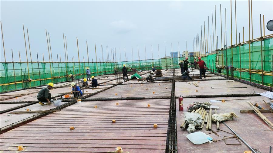 中秋將至,天氣依然炎熱。冶建公司桂海分公司承建的中國移動(dòng)廣西分公司南寧武鳴區(qū)分公司生產(chǎn)調(diào)度用房工程項(xiàng)目施工現(xiàn)場一派熱火朝天的景象,建設(shè)者們各司其職,切割鋼筋、搬運(yùn)材料、綁扎樓面鋼筋等,全力沖刺工程建設(shè)節(jié)點(diǎn)。