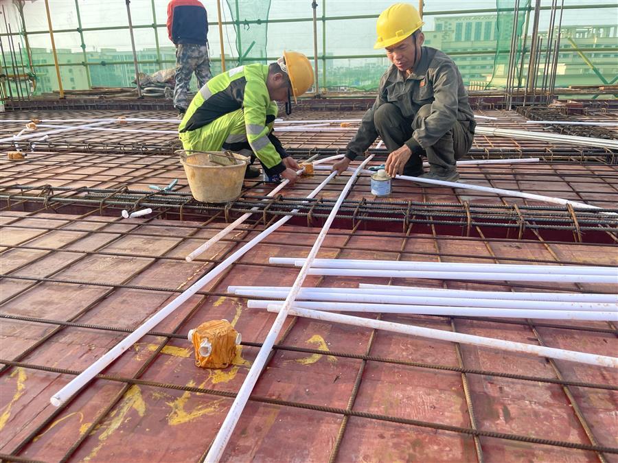 為搶抓項(xiàng)目建設(shè)黃金期,項(xiàng)目部組織全體管理人員堅(jiān)守崗位,進(jìn)一步優(yōu)化施工組織設(shè)計(jì),嚴(yán)格管控施工安全、質(zhì)量,會同業(yè)主、監(jiān)理單位加班加點(diǎn)忙建設(shè),全力保障項(xiàng)目建設(shè)按照既定時(shí)間節(jié)點(diǎn)推進(jìn)。截至目前,已完成生產(chǎn)調(diào)度用房1-4層主樓框架施工和水泵房底板防水施工。