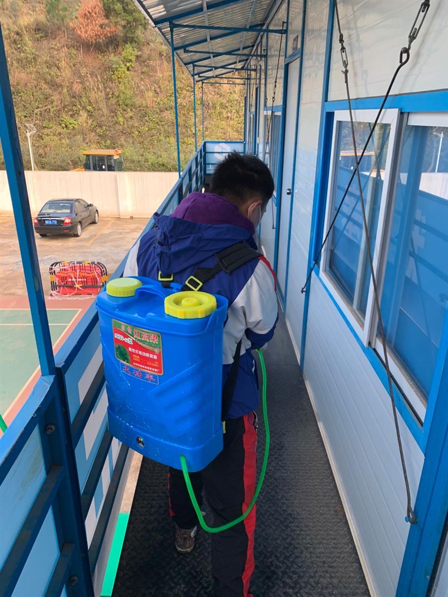 工作人員對項(xiàng)目部進(jìn)行消毒