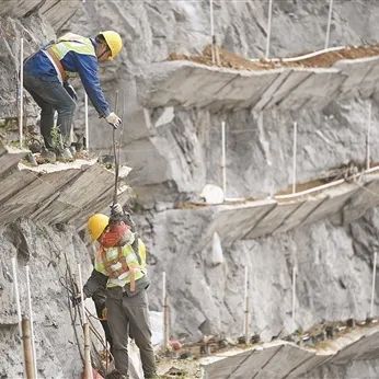 在工地上堅(jiān)守了3年多的工人何定慶,回想起這座大山的植綠過程依然感慨良多。他說:“為了確保施工安全,我們沿著山體向上,用鋼釘在峭壁上打了100多米高的梯子,大家說這就是工人作業(yè)的‘天梯’;然后再繞著山體,用鋼絲繩在峭壁上拉起了4萬(wàn)多米的安全繩,工頭說這是工人的生命線。”