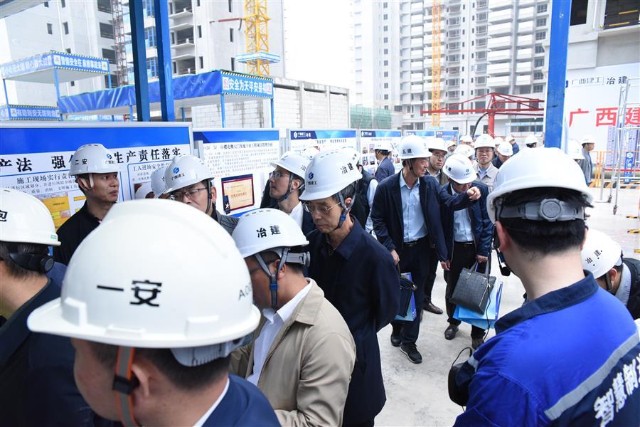 春雨潤邕,綠意蔥蘢。4月10日,集團(tuán)公司2023年第二季度安全生產(chǎn)工作會(huì)議暨質(zhì)量安全標(biāo)準(zhǔn)化現(xiàn)場觀摩會(huì),在冶建公司桂鴻分公司施工的北投時(shí)代(二期)項(xiàng)目舉行。集團(tuán)公司總經(jīng)理、黨委副書記、董事羅濤,副總經(jīng)理陳禮松,總經(jīng)理助理、企業(yè)管理部總經(jīng)理、市場經(jīng)營部總經(jīng)理劉新寧,集團(tuán)公司各子公司負(fù)責(zé)人及相關(guān)人員近300人參加了此次觀摩會(huì)。