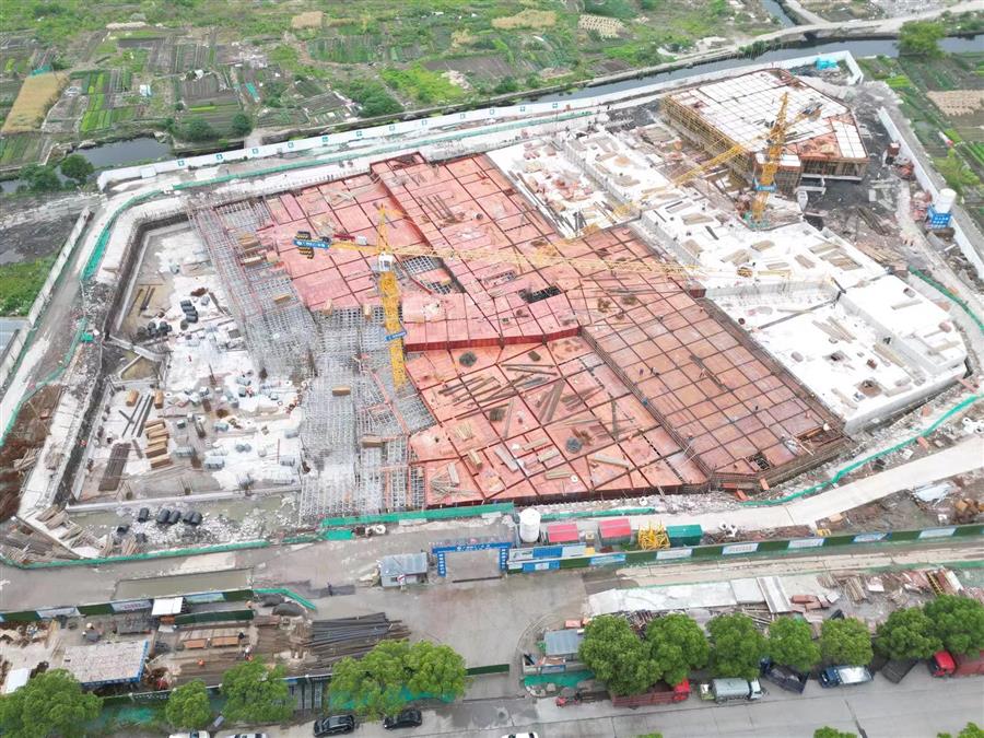 紹興市柯橋區(qū)華舍小學(小赭小學)新建工程(一期)項目主要建設(shè)內(nèi)容包括新建綜合教學樓、專用教學樓、綜合行政樓、風雨操場、食堂、報告廳、地下室等,同時根據(jù)教學需要和學校文化建設(shè)的要求進行校園裝修及配置相關(guān)設(shè)施,建筑面積約為3.74萬平方米,工期540日歷天。目前,項目1#樓(食堂、報告廳)一層頂板梁筋綁扎完成,PC構(gòu)件吊裝中;地下室支撐梁拆除完成,地下室三區(qū)土方回填完成、鋼板樁拔除完成;地下室一區(qū)至三區(qū)頂板澆筑完成,地下室四區(qū)至十區(qū)頂板模板安裝、鋼筋綁扎中,地下室十一區(qū)盤扣架安裝中,地下室坡道墊層澆筑完成。
