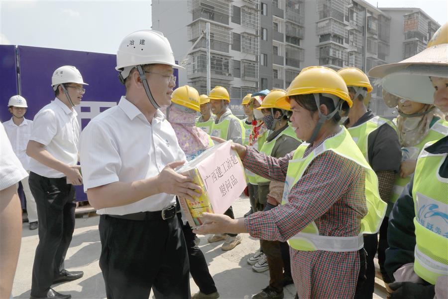 夏日炎炎,高溫不斷,工作不停,節(jié)奏不減。隨著高溫天氣的到來,冶建公司2023年“送清涼”慰問活動(dòng)正式開啟。7月27日,冶建公司董事長、黨委書記覃振華,帶著清涼慰問品,到第七分公司承建的原柳州市第三棉紡織廠集資建房項(xiàng)目施工現(xiàn)場,慰問持續(xù)戰(zhàn)斗在一線的勞務(wù)工人和項(xiàng)目管理人員。
