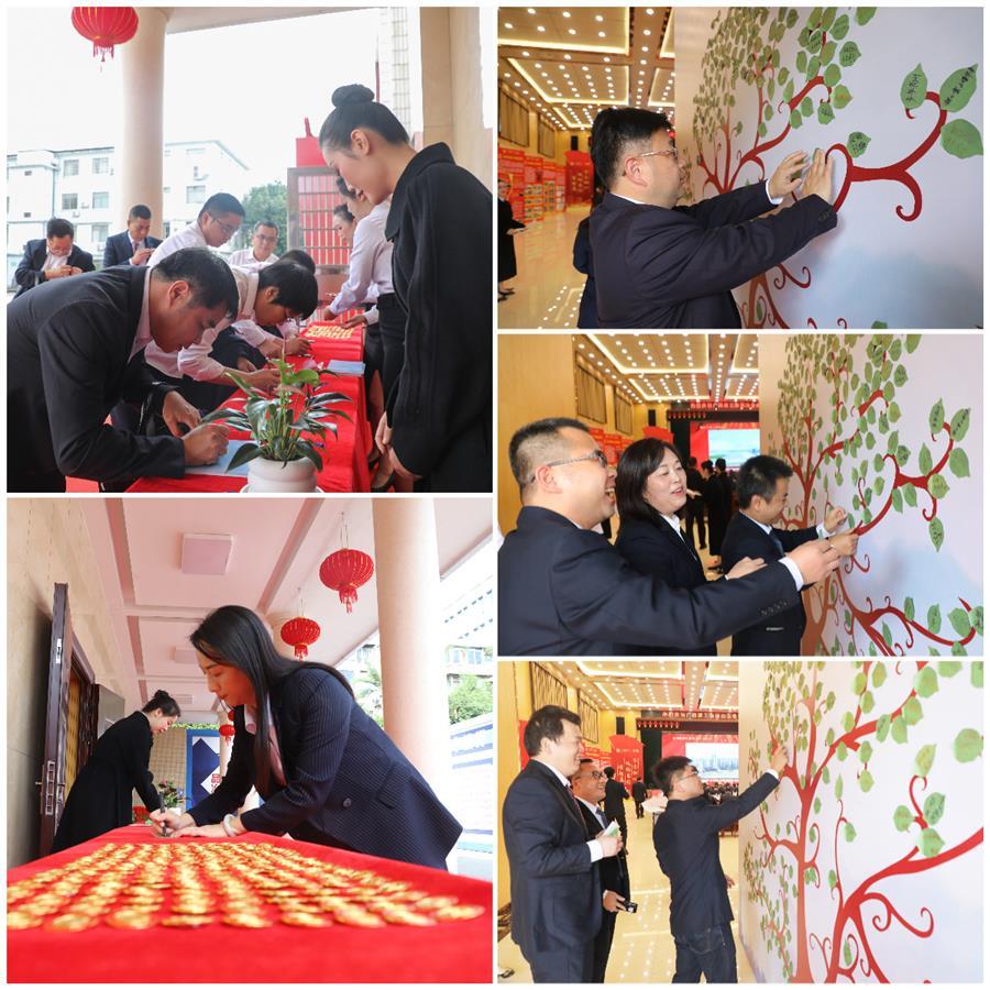 慶典現(xiàn)場簡樸而熱烈,門前高掛的紅燈籠與挺拔矗立綠植相映生輝、鴻運納祥;入口處顯眼位置的許愿樹上貼滿員工手寫的祝福語,寓意著冶建公司必將長成參天大樹,枝繁葉茂;禮堂里燈光璀璨如星,10塊圖文并茂的展板,向各位領導、嘉賓和同事們述說著公司創(chuàng)立、發(fā)展和壯大走過的光輝歷程。