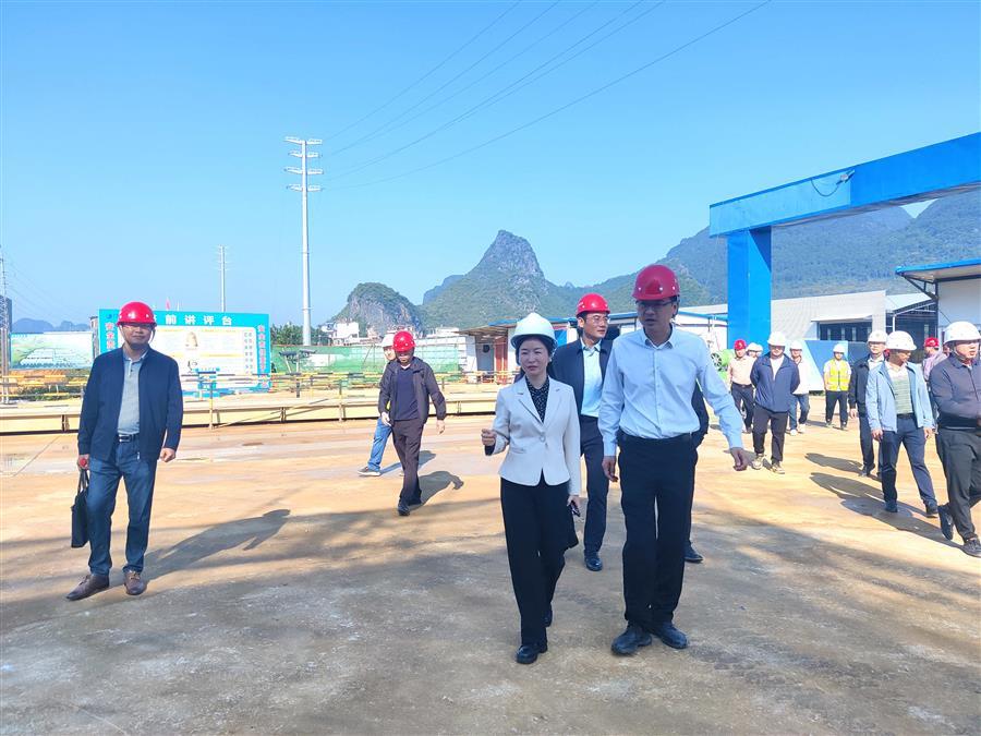 10月31日,桂林市陽(yáng)朔縣縣長(zhǎng)黃小雪帶隊(duì)到冶建公司桂鴻分公司承建的陽(yáng)朔縣集中工業(yè)園福利園(一期)A-05地塊基礎(chǔ)建設(shè)項(xiàng)目開展調(diào)研指導(dǎo)工作。