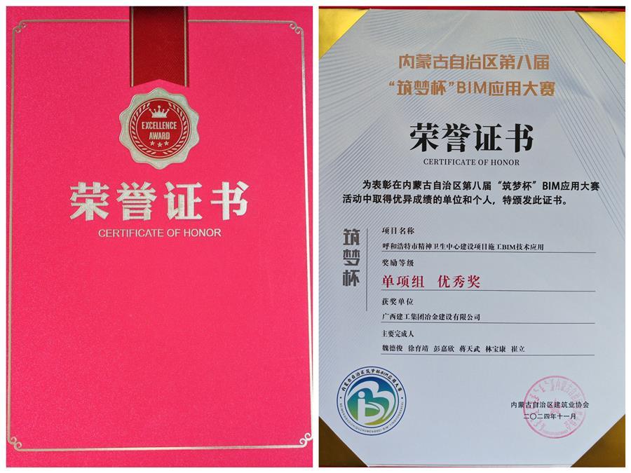 近日,內(nèi)蒙古自治區(qū)建筑業(yè)協(xié)會公布表彰決定,冶建公司第五分公司承建的呼和浩特市精神衛(wèi)生中心建設項目工程榮獲內(nèi)蒙古自治區(qū)第八屆“筑夢杯”BIM應用大賽優(yōu)秀獎。
