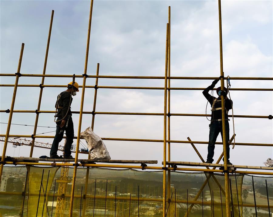 在中房綠景二期項(xiàng)目現(xiàn)場(chǎng),機(jī)器轟鳴,不同工種的工人正在緊張有序開工,一幅熱火朝天的景象替代了往日的寂靜。