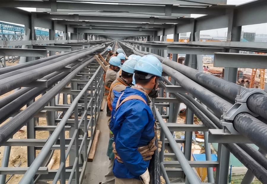 在防城港鋼鐵基地項目(一期)動力系統(tǒng)電力設施工程——10kV電力電纜敷設項目施工現(xiàn)場,工人們各司其職、齊心協(xié)力,努力推進項目建設。