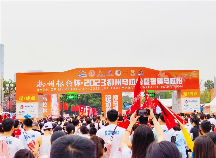 4月9日上午7:30,柳州銀行杯·2023柳州馬拉松暨警察馬拉松在柳州市民廣場(chǎng)鳴槍開(kāi)跑。上萬(wàn)名參賽選手用奔跑和速度感受魅力柳州。