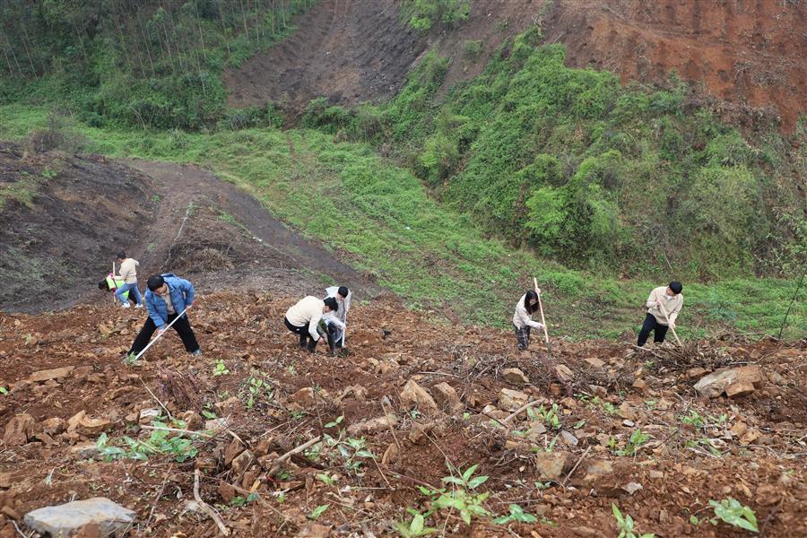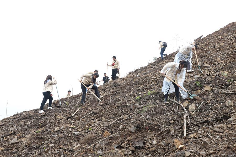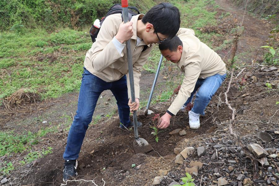 活動(dòng)現(xiàn)場(chǎng),青年志愿者分組分片區(qū)開展植樹活動(dòng)。各小組團(tuán)員青年分工協(xié)作、默契配合,鏟土挖坑、立苗填土,個(gè)個(gè)熱情高漲、干勁十足,活動(dòng)現(xiàn)場(chǎng)氣氛熱烈。經(jīng)過大家熱火朝天的忙碌,一排排新種樹苗有序“落根”,山坡上煥發(fā)出盎然生機(jī)。