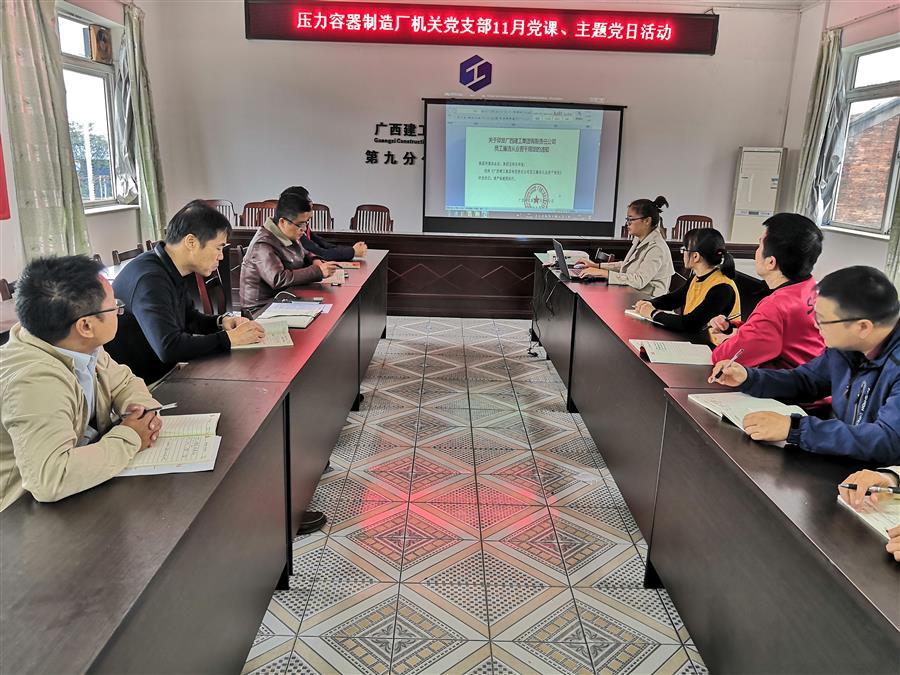 近日,壓力容器制造廠機關黨支部組織全體黨員學習《廣西建工集團有限責任公司員工廉潔從業(yè)若干規(guī)定》(以下簡稱《規(guī)定》)。