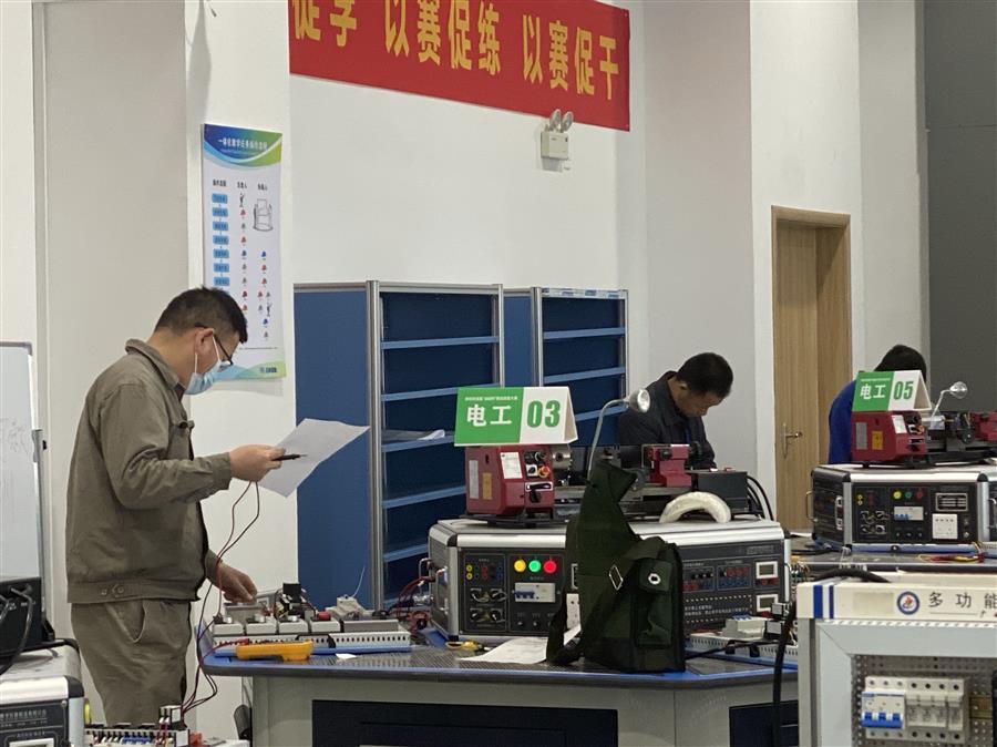 公司選派兩名員工參加本次大賽的電工項(xiàng)目及電氣安裝項(xiàng)目比賽,比賽通過理論知識考試和現(xiàn)場實(shí)操考試形式進(jìn)行,現(xiàn)場實(shí)操考試以機(jī)電設(shè)備事故處理的形式開展。比賽要求參賽選手在規(guī)定時(shí)間內(nèi)完成相同的任務(wù),速度快、操作準(zhǔn)、質(zhì)量高者獲勝。