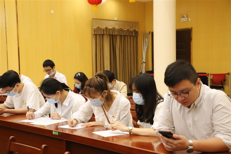 參加獻血的員工正在填寫表格